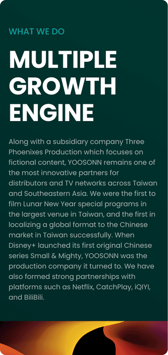 Founded in 1986, YOOSONN is a media production company whose works cover TV shows, series, and films, earning not only numerous prestigious awards but also significant commercial success. With the vision to expand its global markets, YOOSONN aims to redesign its website to showcase its expertise and effectively attract potential partners.